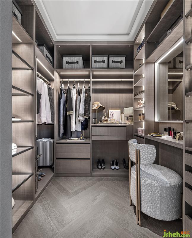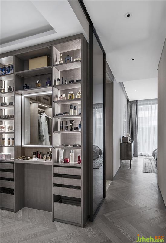 設(shè)計(jì)師為主臥設(shè)計(jì)主衛(wèi)-步入式衣帽間-全身鏡這條流線,集中流暢地滿足男女主人日常儀容打扮的需求。