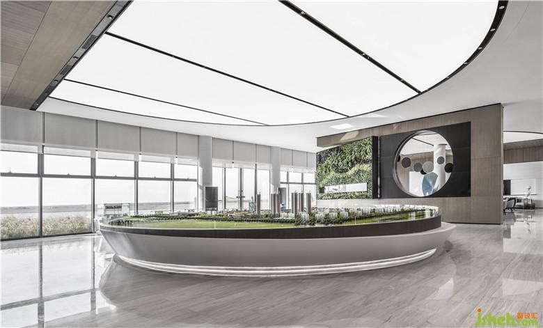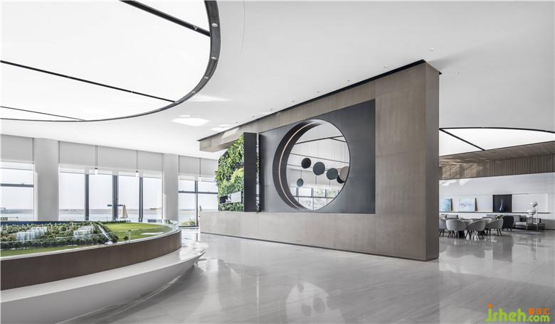 洽談區(qū)放大了“海洋”元素,藍色的地毯模擬出海上微瀾的生動場景,而巨大的連排落地玻璃窗則把近在咫尺的、盛大的海洋景色“借入”室內,讓人如迎海風,心曠神怡。