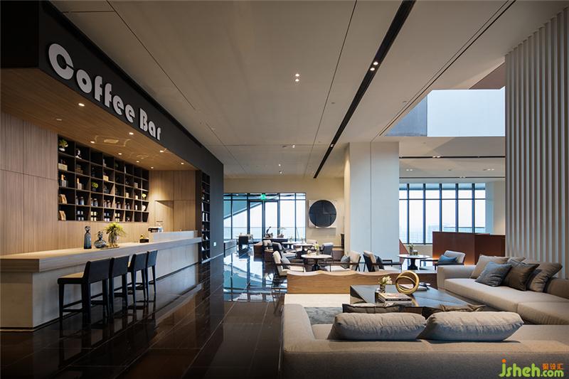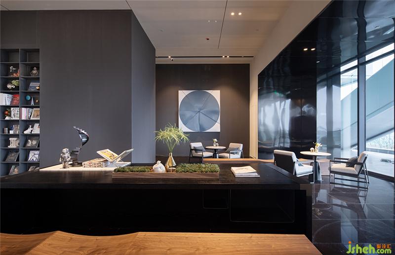 LOUNGEBAR位于接待大堂的中心,保留了空間整體性同時(shí),巧妙的將洽談區(qū)空間與沙盤區(qū)域分隔開(kāi)來(lái),保證參觀者的動(dòng)線互不干擾。