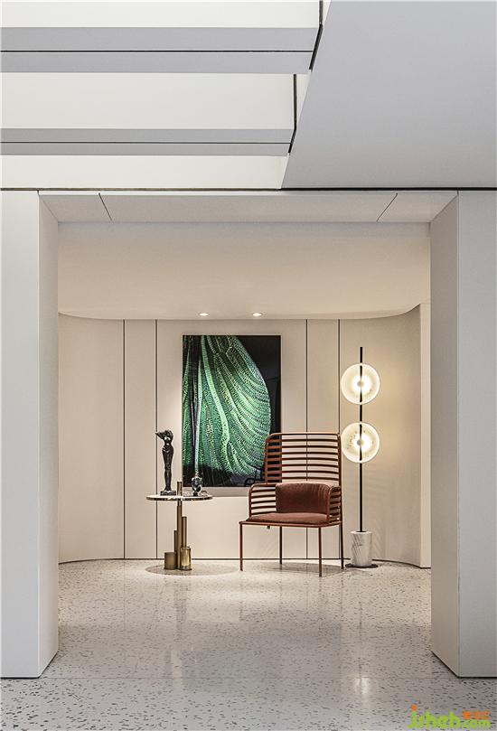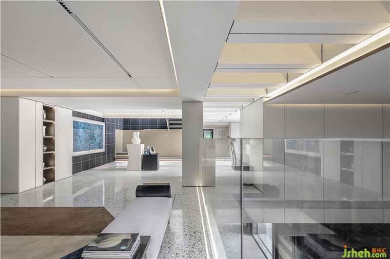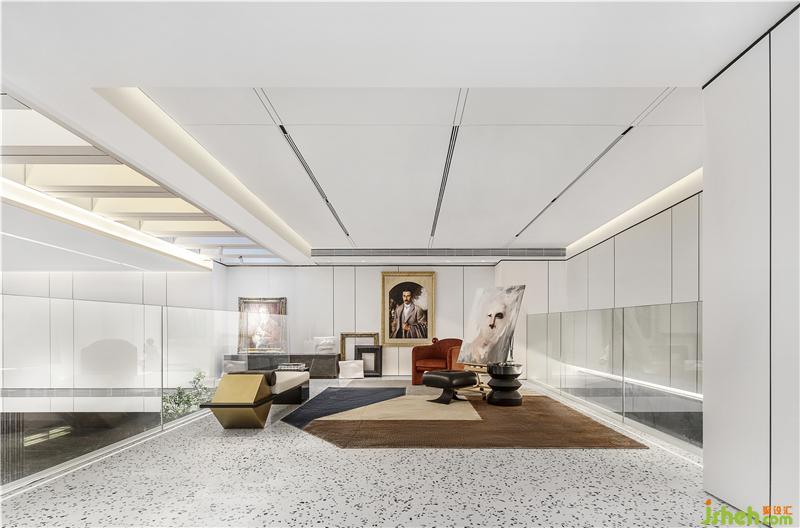 夾層專屬于女主人的瑰麗幻想,保留金色為主色調(diào),采用專賣店、藝術(shù)畫廊的燈光布置的思路,與其他空間形成鮮明的對比,以強(qiáng)調(diào)其自身的獨特性,從而呈現(xiàn)出一個散發(fā)著高貴和奢華的藝術(shù)空間。別墅樣板房設(shè)計