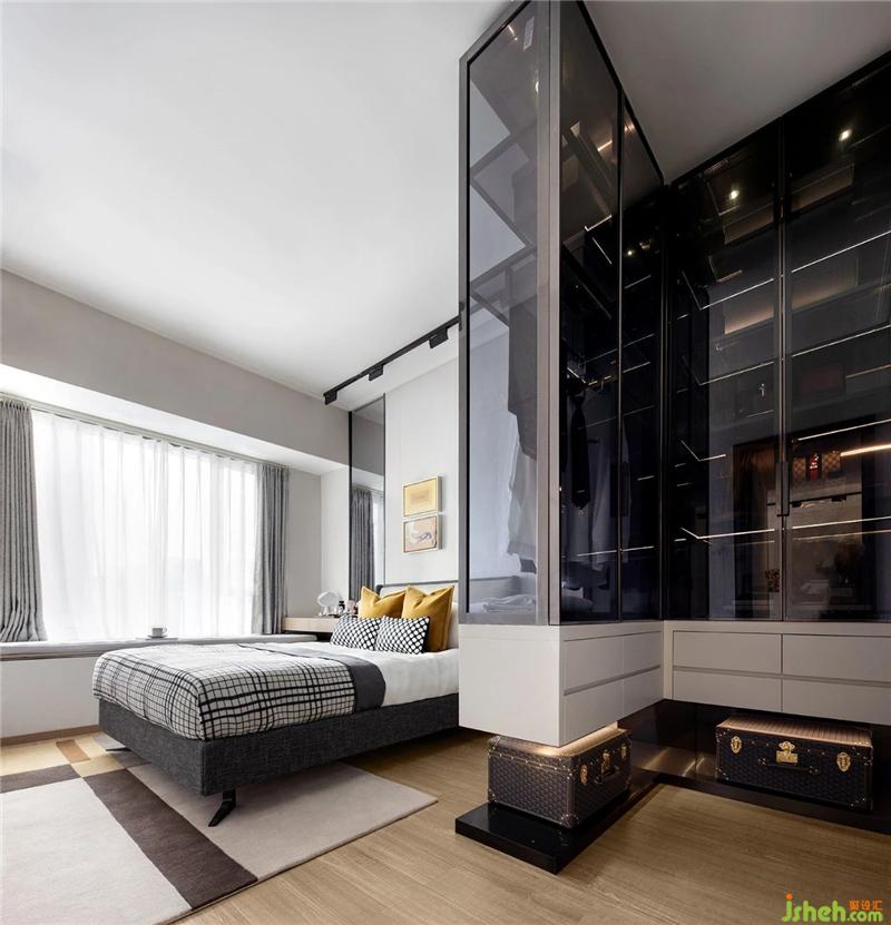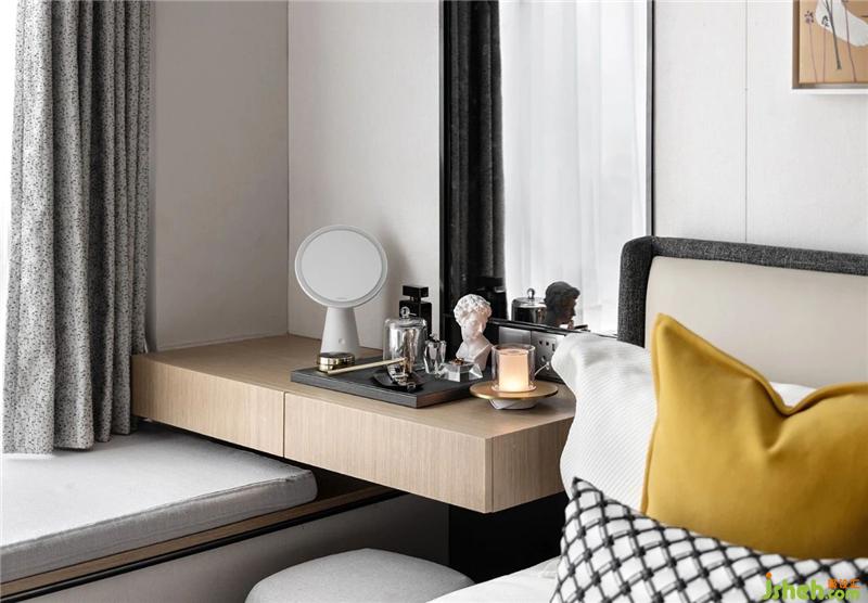 臥室整體色調(diào)素雅大氣,簡潔的收納設(shè)計顯得輕盈而不繁重,視覺美感與實用功能兩相融合。