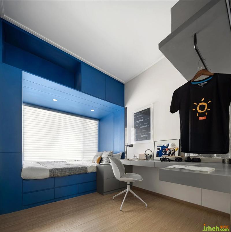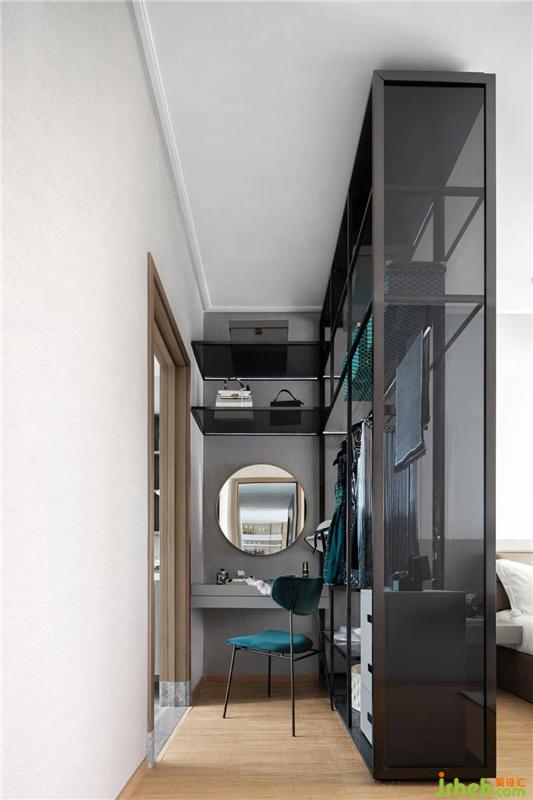 灰色與木飾營造溫和平靜的氛圍,鮮活的藍綠色點綴其中,喚醒了整個空間的情緒。內(nèi)斂東方格調(diào)與時尚色彩互相碰撞,突破了固有的傳統(tǒng)印象,令人眼前一亮。