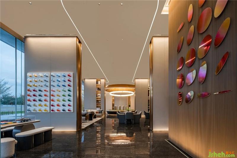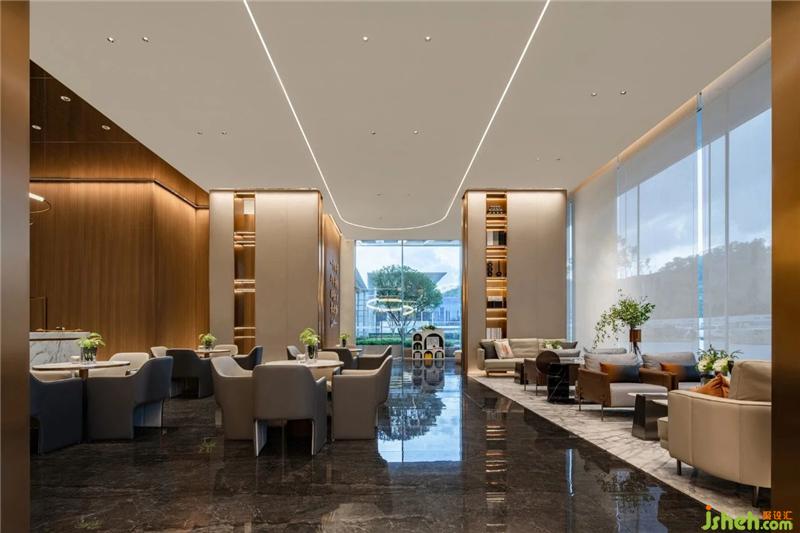 夕陽漸沉,余暉盡染,洽談區(qū)光線感進(jìn)入一天中漸漸柔和的階段,人們也邁入閑適的休閑時光,偃息了張揚(yáng)的光芒,亮起了點點燈盞。