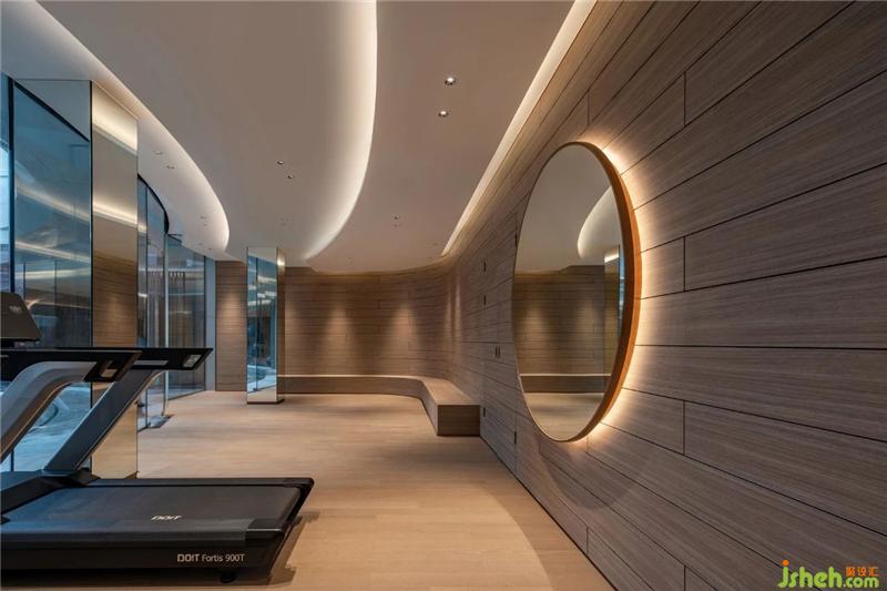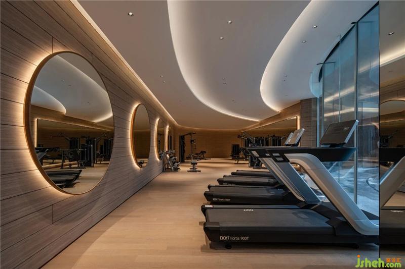 健身室摒除繁瑣的裝飾和復(fù)雜的造型,利用線條的組合、拼接、變換,讓整個空間看起來更富設(shè)計感與運(yùn)動感。售樓處設(shè)計弧形的線條,利用大面積的落地窗,引入自然光線,在視覺上更是拉長了空間的距離。