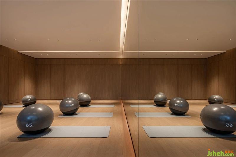 相鄰的瑜伽室通過木質(zhì)材料自身最原始的質(zhì)感,將空間的淳樸與靜謐自然釋放,平靜自然。
