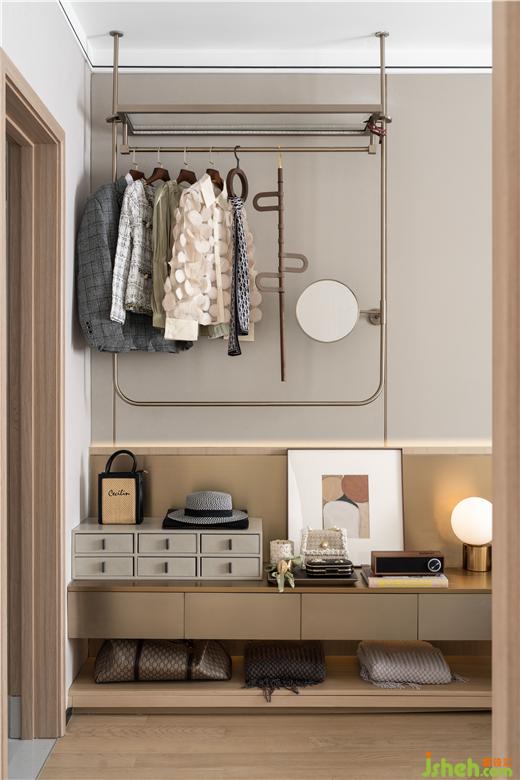 南昌樣板房設(shè)計采用開放式衣柜設(shè)計,連接私人空間的每個部分,夫妻二人可以一同品茶閱讀,不時交談二句,細(xì)水流長不過爾爾。