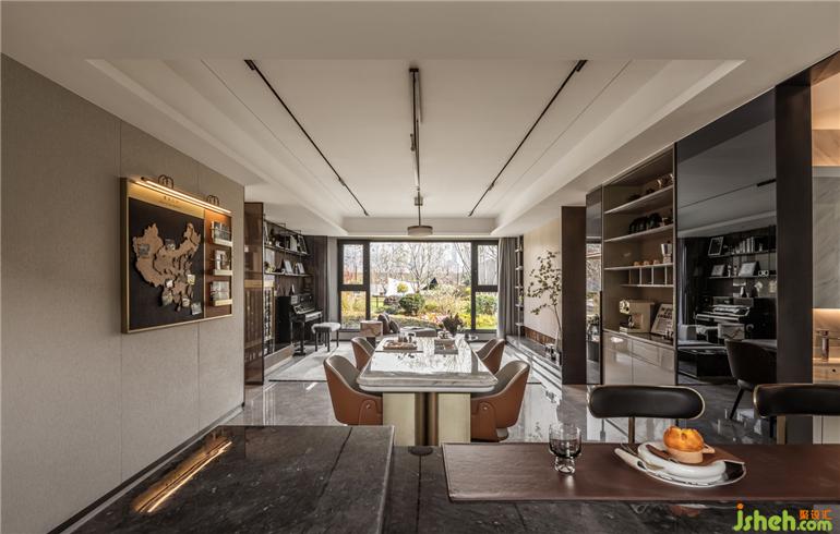 以爵士樂的主題貼合主人家的音樂品味,開放式的格局下,西安樣板間設計令私人生活情境更加多元化,無論身處空間的哪個地方,都能無阻隔交談,分享彼此的浪漫時光。