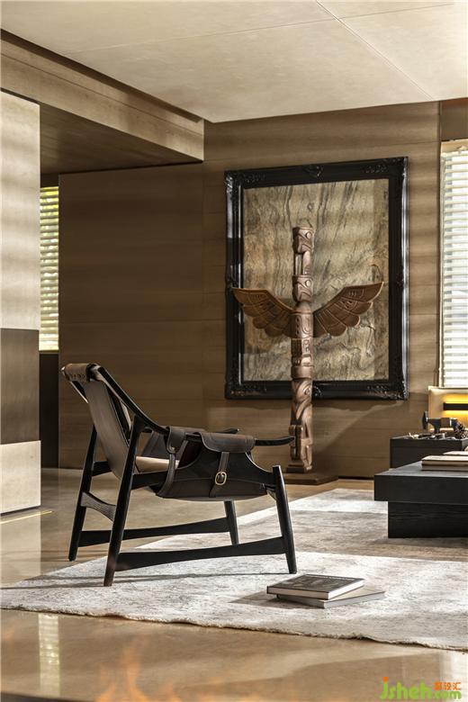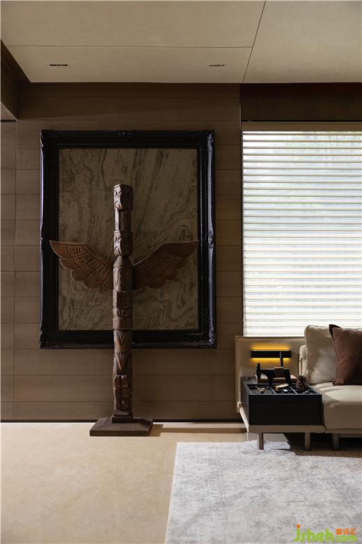 圖騰柱以鷹的形象代表勇敢,傳遞遠古自然的神秘力量,廣州疊墅設計在原始風格的工藝品下感受野性的魅力。