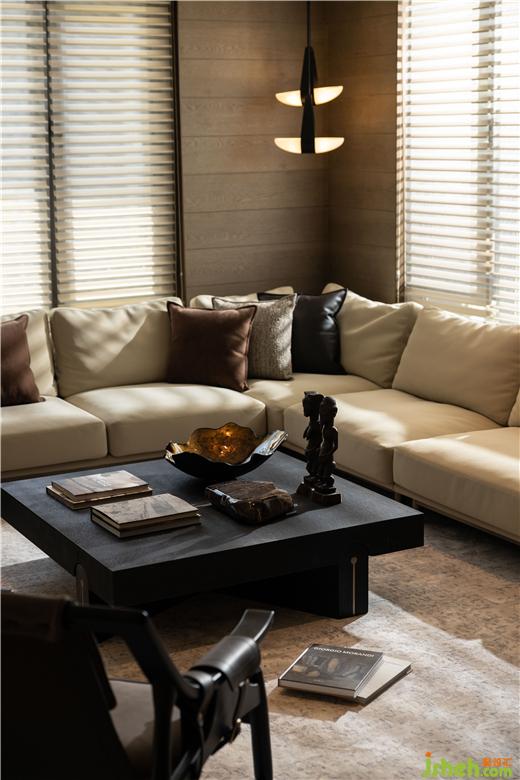 搖曳的光影下,棕櫚樹、原石與仿牛皮地毯等元素烘托濃烈的野外氛圍,仿佛置身西部小鎮(zhèn),廣州疊墅設計滿足探險者對牛仔風情的狂野想象。