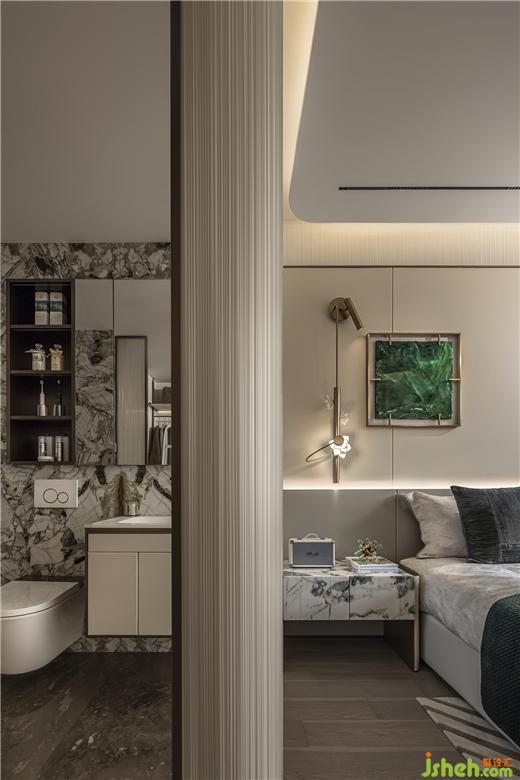 墨綠掛畫成為房間中最點(diǎn)睛的一筆,晨起拉開窗簾引自然的詩意入室,福州樣板間設(shè)計(jì)溫和日光讓空間更顯寬闊。