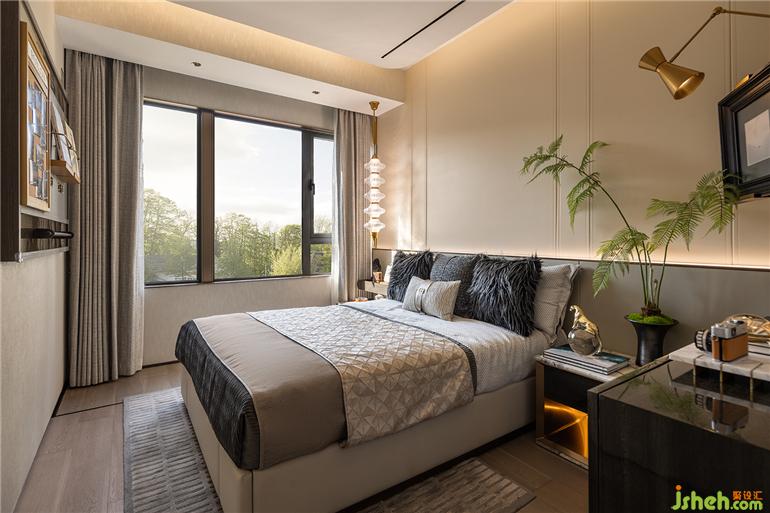 交由盆景的生長線條勾勒出空間的雅致,床頭柜的雙層設計容納每本愛書的收藏,福州樣板間設計閱讀可以成為睡前的習慣。