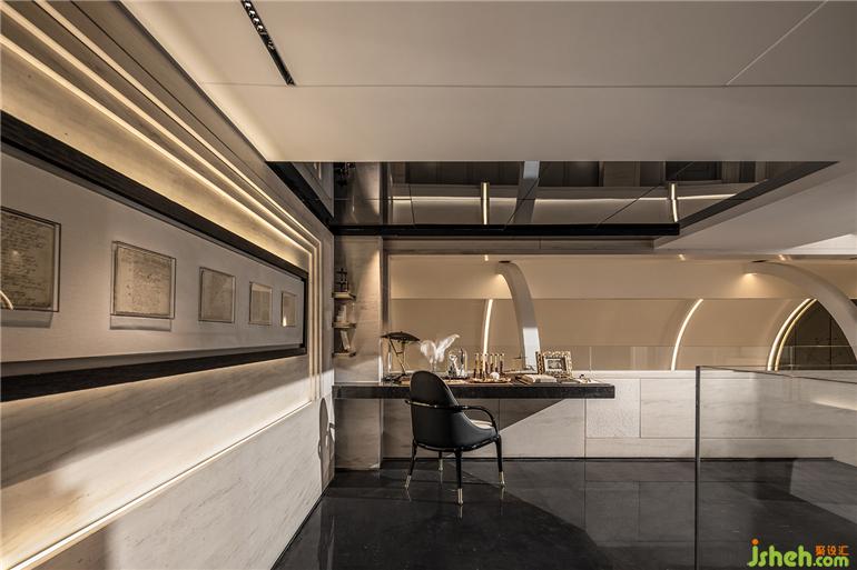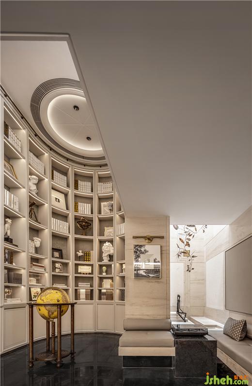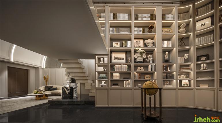 劇場感延伸到書房,抿一口美酒翻開書頁,疊墅設(shè)計(jì)得以全身心沉浸在詩句筑造的想象空間中。