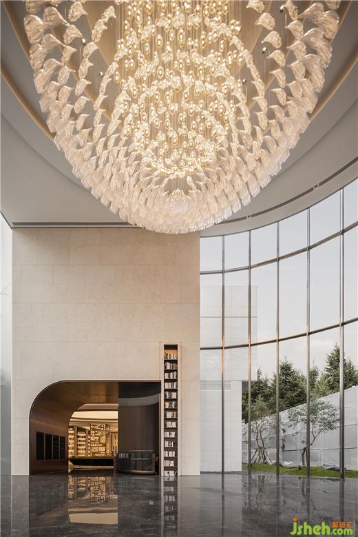 玻璃管材質晶瑩通透,賦予了空間未來感,廣州保利錦上營銷中心設計恰如其分地令人產生駛向未來“方舟”的想象。