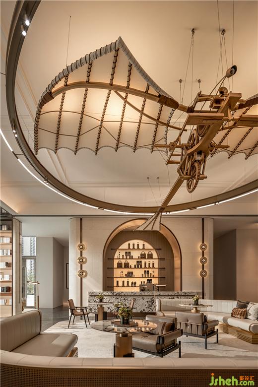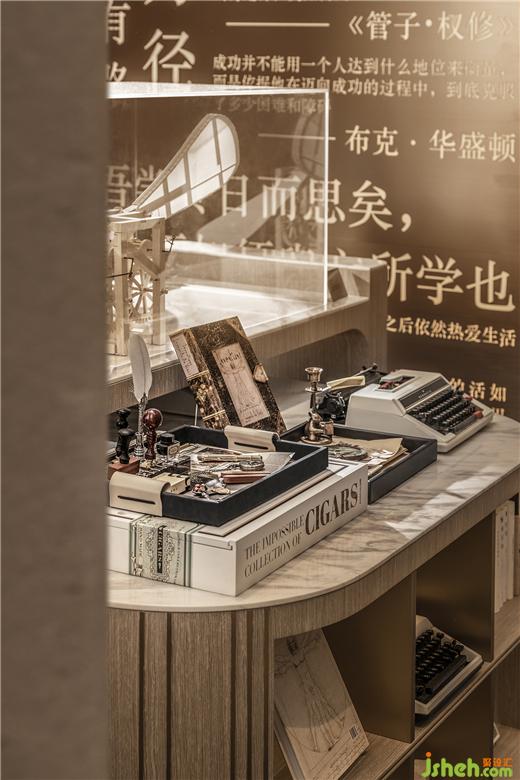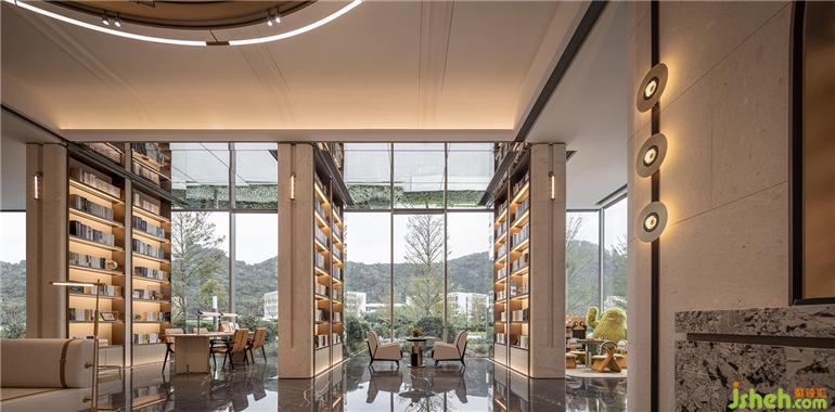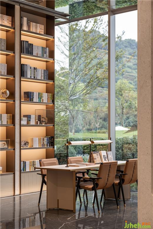 秉承自然至上的設(shè)計原則,書架之間的距離為山景留有足夠的觀賞空間,閱讀抬頭的空隙眺望遠山的宜人美景,廣州保利錦上營銷中心設(shè)計將書上的山林意境也轉(zhuǎn)化到現(xiàn)實中去。