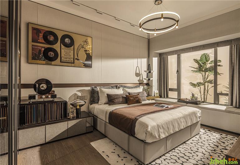 在流媒體音樂流行的當(dāng)下,對黑膠唱片的情有獨鐘,源于對音樂的敬畏與熱愛。廣州保利錦上樣板房設(shè)計臥室的角落設(shè)置雙層收納柜,收藏每一首來之不易的金曲,動聽的旋律詮釋浪漫與情懷。