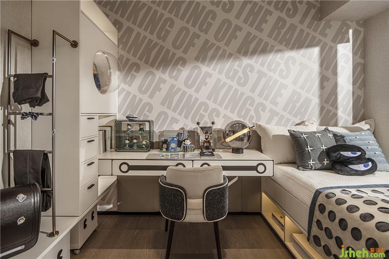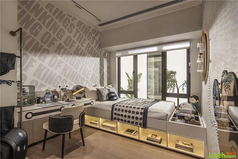 廣州保利錦上樣板房設(shè)計基于動漫電影的主題,以動感的文字墻和波點紋路的床具傳達活潑可愛的生活氛圍,大大小小的卡通模型有序散落在房間角落,與孩子一起探索世界的奇妙。