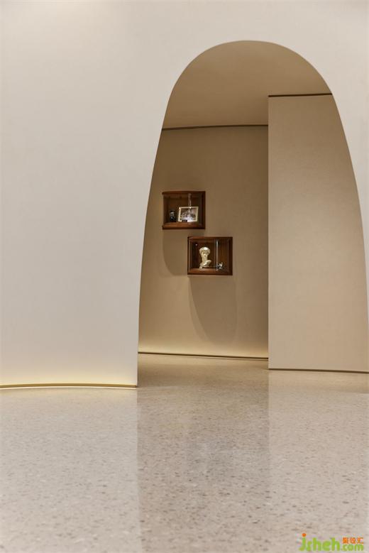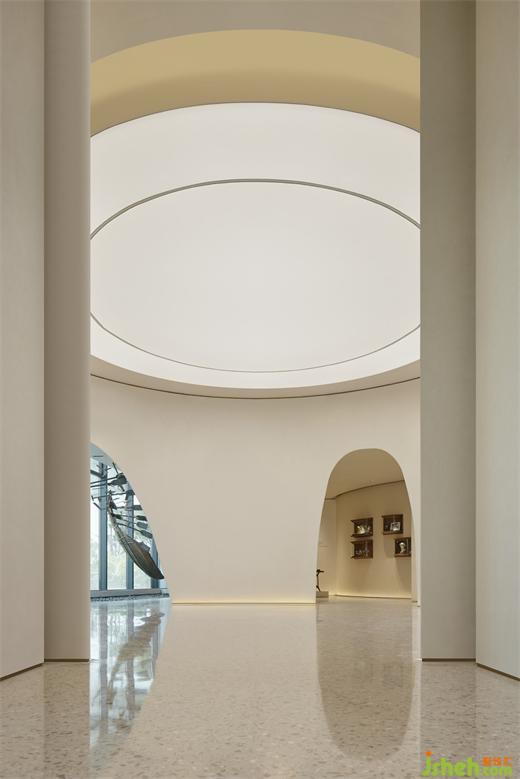 直線與弧線交織,幾何空間內(nèi),純粹的顏色營(yíng)造靜謐的氛圍,回聲傳響,聆聽(tīng)這座城市的故事。