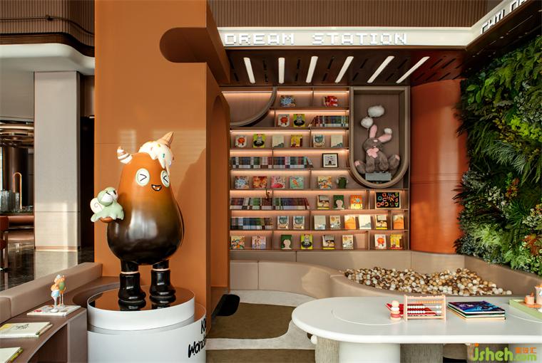 因此兒童活動區(qū)注重于親子的互動陪伴功能,橙色為基調(diào),令空間洋溢無限活力,泡泡池兩邊設(shè)置書架和桌椅,讓陪伴填滿孩子的童年。