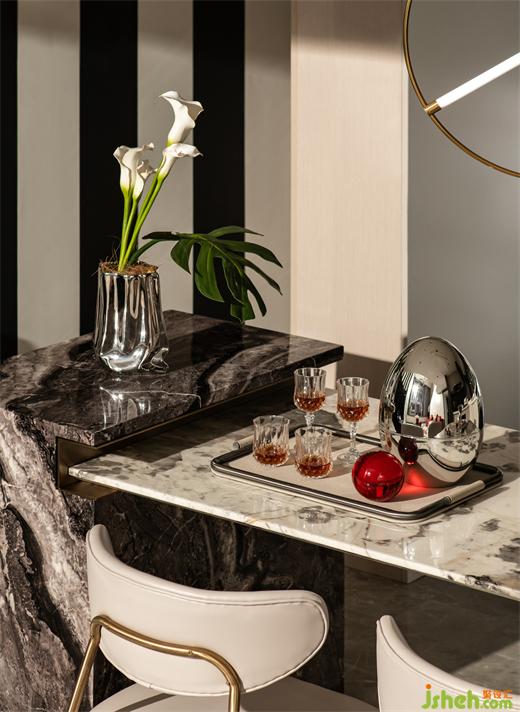 櫻桃擺件點綴的客廳、開放式餐廳是共享的暢聊地。喜歡同一道菜或同一首歌,成為相恨見晚的開篇。