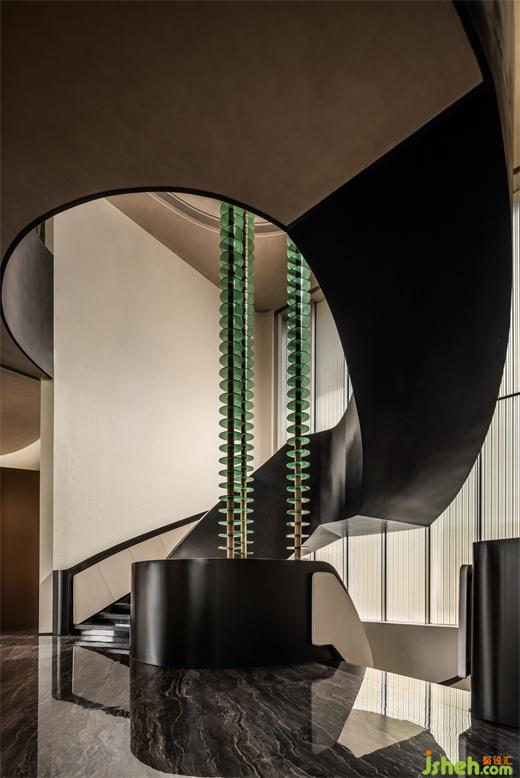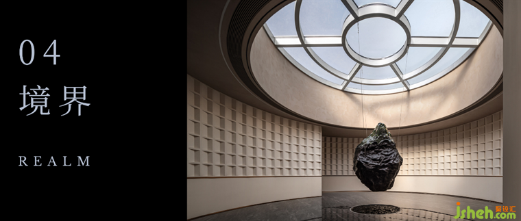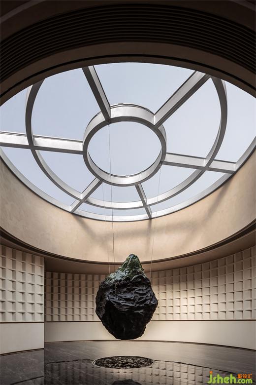 緩緩踏上二層,視光所及穹頂天窗下是萬物源石所在,“森·源”裝置以隕石為原型,鄭州會所設(shè)計(jì)四周環(huán)繞壁龕具象萬物對源處的回響。