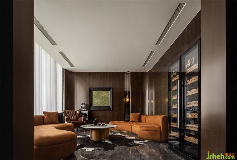 沙發(fā)宛如夕陽余暉染上了一角,一抹暖意溫暖了整個空間。鄭州會所設(shè)計(jì)細(xì)膩的絨面肌理,柔軟的坐感,讓人沉醉其中,品著瓊漿玉液,聆聽輕柔音樂,忙碌的時光也慢了下來。