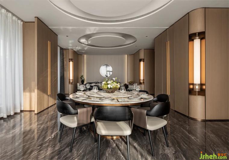 私宴餐廳延續(xù)空間調(diào)性,在開敞的空間以溫和木質(zhì)為底,鄭州會所設(shè)計(jì)營造自然的親切感,金屬質(zhì)感的點(diǎn)綴帶來雅奢的體驗(yàn)。親友相聚,饗宴賓客,靜謐的空間里感受舒適豐盛的珍饈美饌。