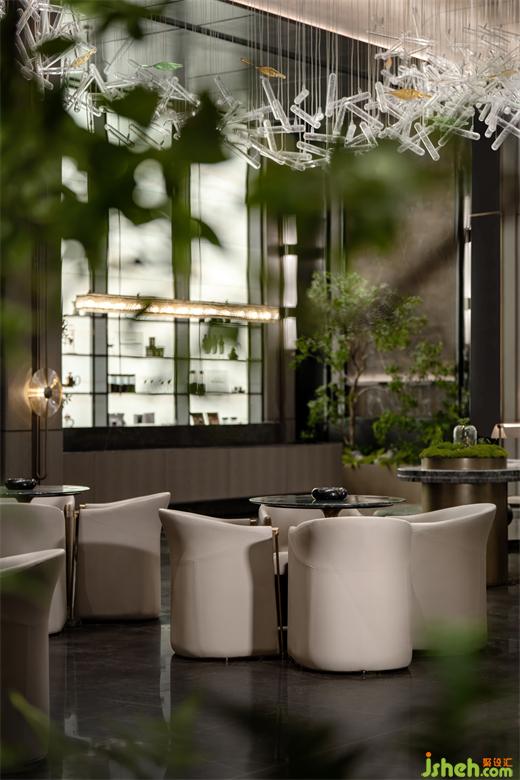 自然是藝術(shù)的催化劑,自然的綠意與天光被納入室內(nèi)。營銷中心設(shè)計通過植物的營造,將城中的度假體驗引入家中。