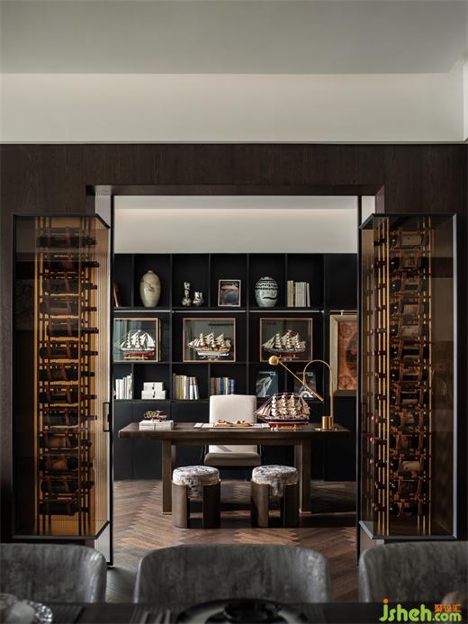 “長(zhǎng)風(fēng)破浪會(huì)有時(shí),直掛云帆濟(jì)滄海”,整個(gè)家庭的世界觀、價(jià)值觀、人生觀容納在書房之中。精細(xì)化的收納設(shè)計(jì)使書籍、藏品、掛畫各居其所。