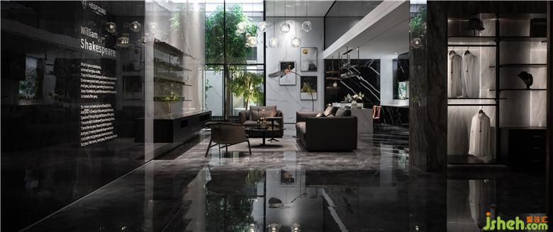 選材區(qū)以產(chǎn)品展示為核心,通過疏密有致的幾何體塊序列進(jìn)行敘事。非對(duì)稱空間是在空間維度上尋找平衡點(diǎn),是相對(duì)復(fù)雜且豐富的,空間體量和疏密有致的幾何體塊之間的關(guān)系形成了空間獨(dú)有的藝術(shù)形態(tài),在細(xì)節(jié)處理上,對(duì)材料的對(duì)縫,收邊,比例都經(jīng)過細(xì)致的推敲和設(shè)計(jì)和精磨精切。追求品質(zhì),而這就是建筑對(duì)使用者體現(xiàn)出的尊重感。黃銅等金屬材質(zhì)低調(diào)地出現(xiàn)在空間中,使得室內(nèi)的寧?kù)o氛圍多了些許豐富的變化。而木材與石材的運(yùn)用,亦使空間多了些溫潤(rùn)及細(xì)致的表達(dá)。