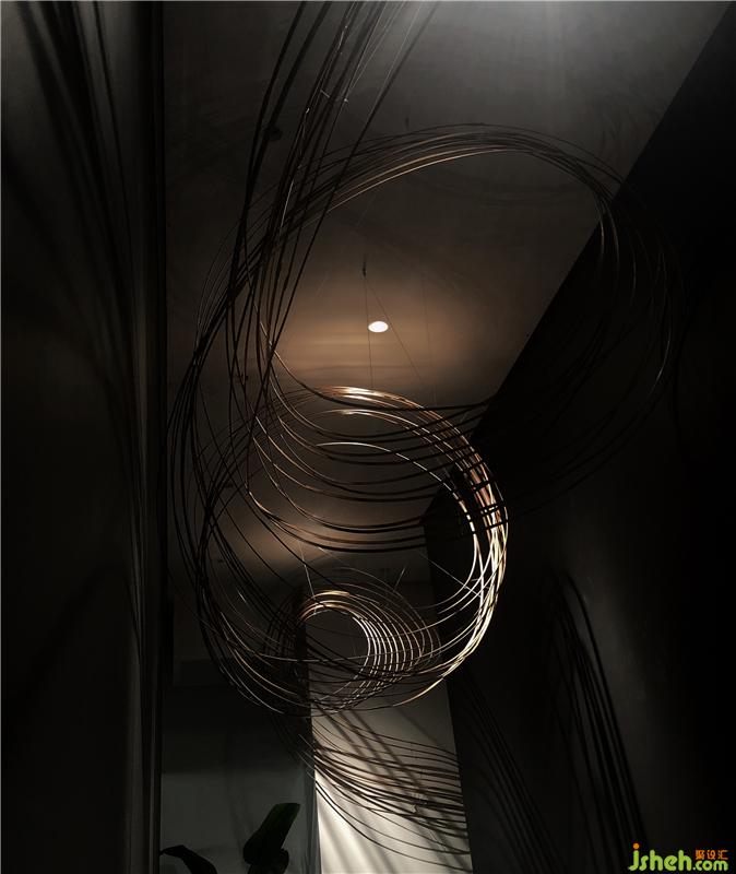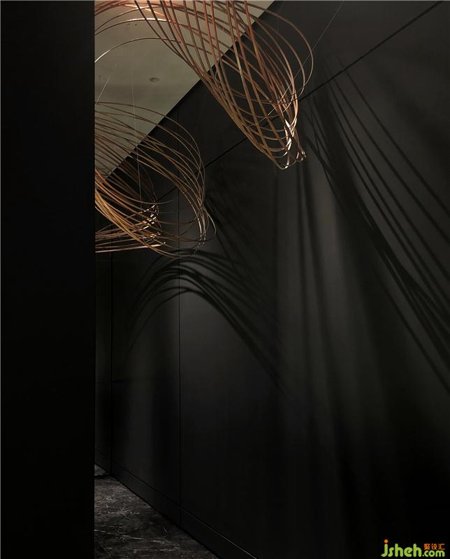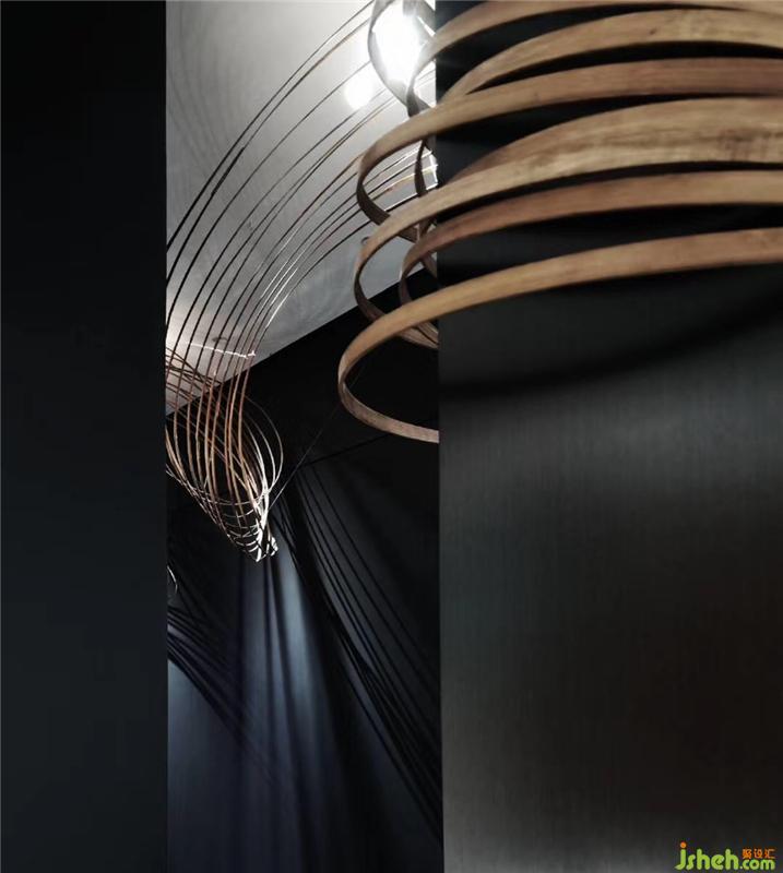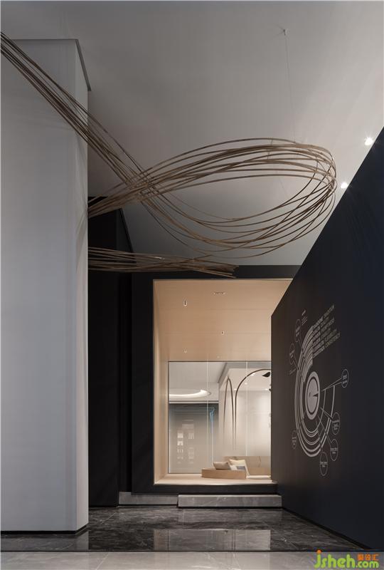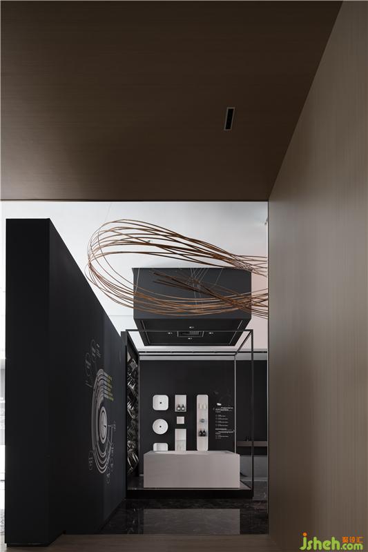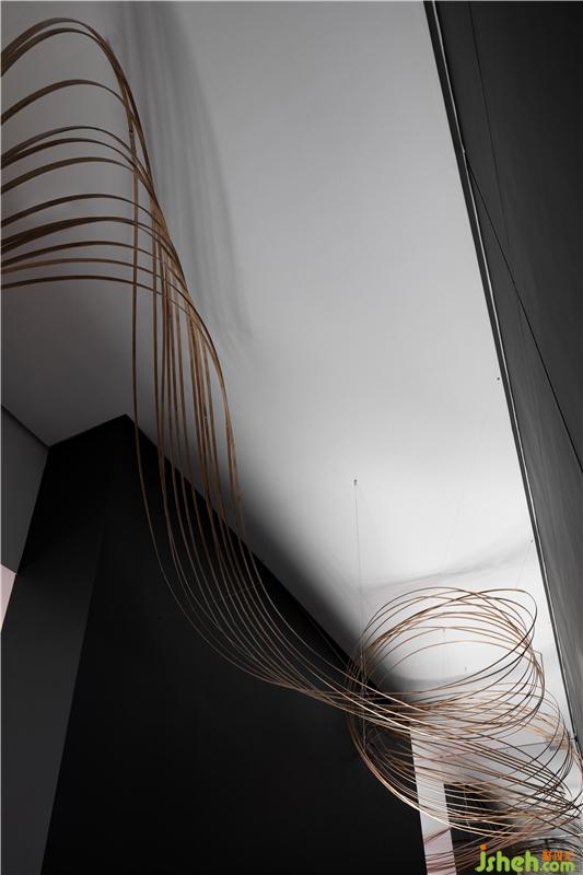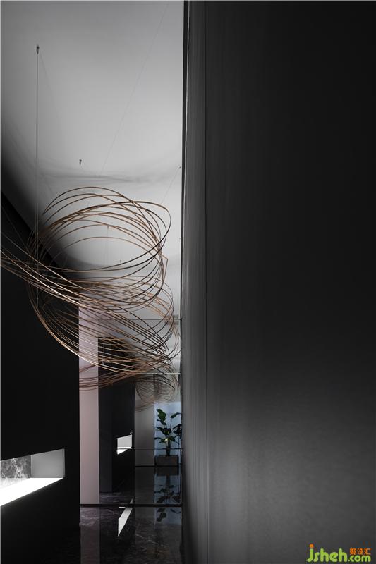視覺引導(dǎo)觀者從物質(zhì)結(jié)構(gòu)轉(zhuǎn)換成思考和聯(lián)想模式,也是設(shè)計師對于物質(zhì)空間如何深入轉(zhuǎn)化的再次探討,線索從入口開始穿過黑色長廊,幾經(jīng)輾轉(zhuǎn),結(jié)束于時空之中,這種元素極大程度的構(gòu)建了空間,他們可以足夠大,使人迷失,也足夠小,使人見己佛山展廳設(shè)計。