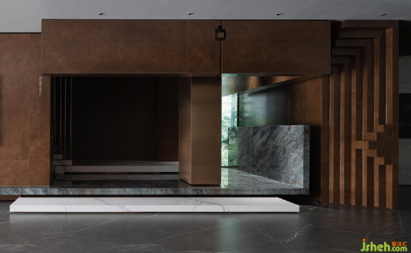 結(jié)構(gòu)的縱深通過光影的變化而漸次遞進(jìn),設(shè)計(jì)師通過將結(jié)構(gòu)體有序的分離重組,讓平面的墻體變成具有立體幾何美感的雕塑,既增強(qiáng)空間的結(jié)構(gòu)張力,也凸顯工業(yè)時(shí)代的精磨精切的工藝加工品質(zhì)佛山巖板展廳設(shè)計(jì)。