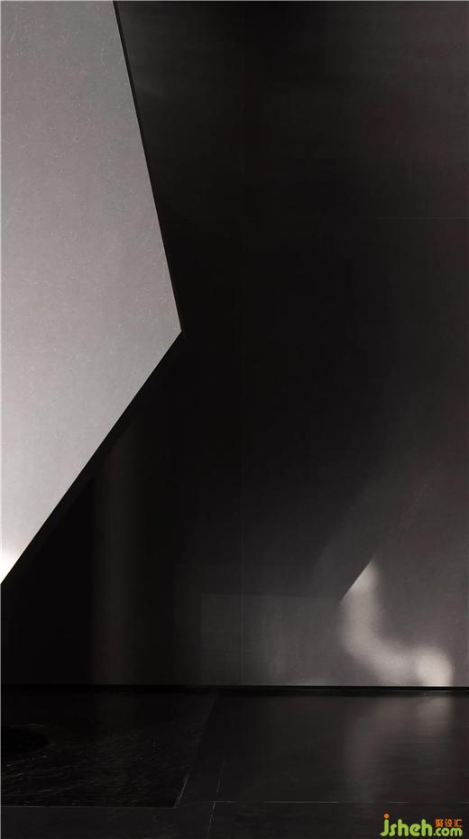 建筑大師高迪曾說過:“曲線屬于上帝,直線屬于人類?!蹦敲葱本€呢?它似乎屬于一種未被定義的形態(tài)。斜形的物體從物理學(xué)的角度來看具有多重性;既代表了極端的不穩(wěn)定性,比如意大利博洛尼亞的雙子斜塔以及比薩斜塔,也代表了極端的穩(wěn)定性,比如埃及金字塔。巖板展廳設(shè)計(jì)利用這種未被定義的斜線來構(gòu)建和分割空間,使空間具有一種獨(dú)特的場所精神!