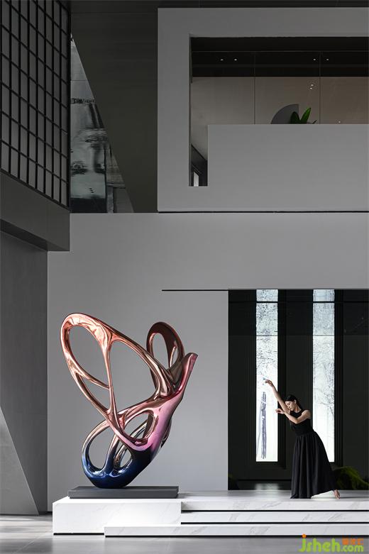 清晨,暖暖的陽光透過整面的方格玻璃窗,輕柔地灑落在大堂的每一個(gè)角落,勾勒出一種神秘而神圣的美感,光影彌漫在空間之中,散發(fā)著獨(dú)特的優(yōu)雅氛圍。中空通過兩層結(jié)構(gòu)造型,運(yùn)用幾何元素,瓷磚總部設(shè)計(jì)以方形體塊進(jìn)行穿插疊加,營造空間立體感的同時(shí),也使得產(chǎn)品精致感與空間藝術(shù)感相得益彰,以此形成獨(dú)特的品牌符號和性格IP.