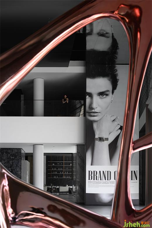 幻彩的“雙G”品牌LOGO符號,凸顯出品牌特有的文化IP,英文”GOLDE”是“黃金”的意思,設(shè)計(jì)師將品牌精神符號以鏤刻的工藝體現(xiàn)在大堂正面的巖板墻壁上,體現(xiàn)出品牌的追求極致的工匠精神。