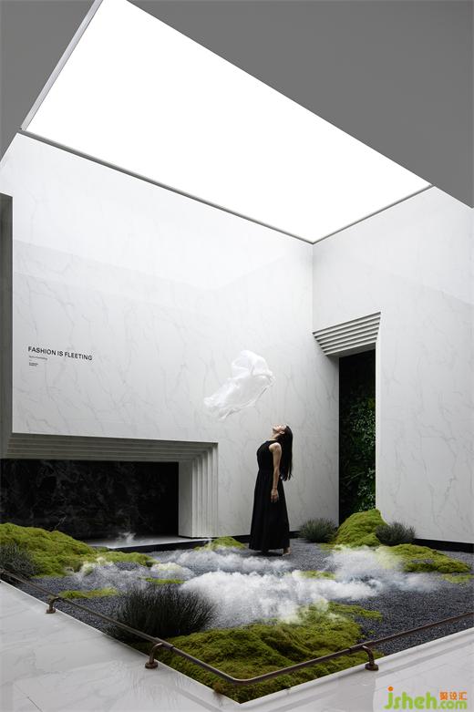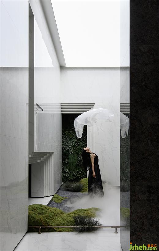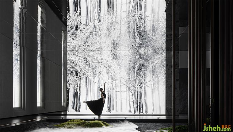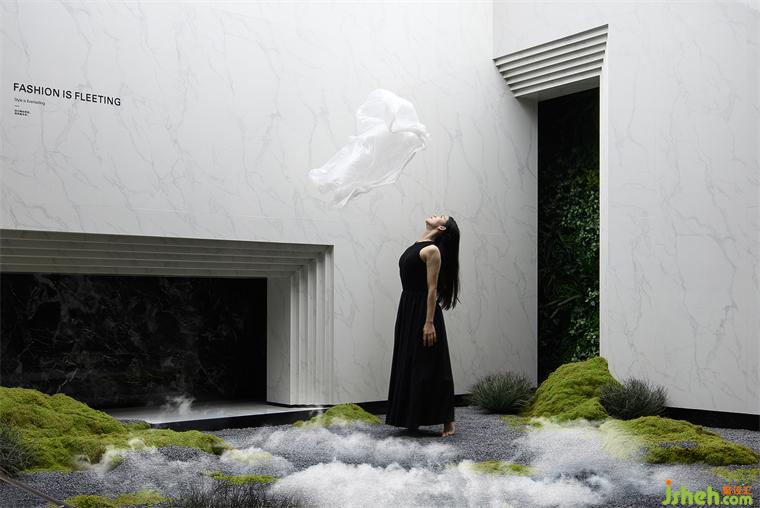 潔白的叢林、流動的霧氣、飄散的云霧,給空間增添些許神秘感,舞者猶如翩翩仙子,優(yōu)雅地轉(zhuǎn)身、旋轉(zhuǎn)、起舞,像飛舞的蝶,舞動著時尚的華彩。