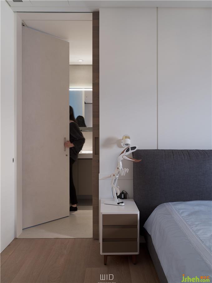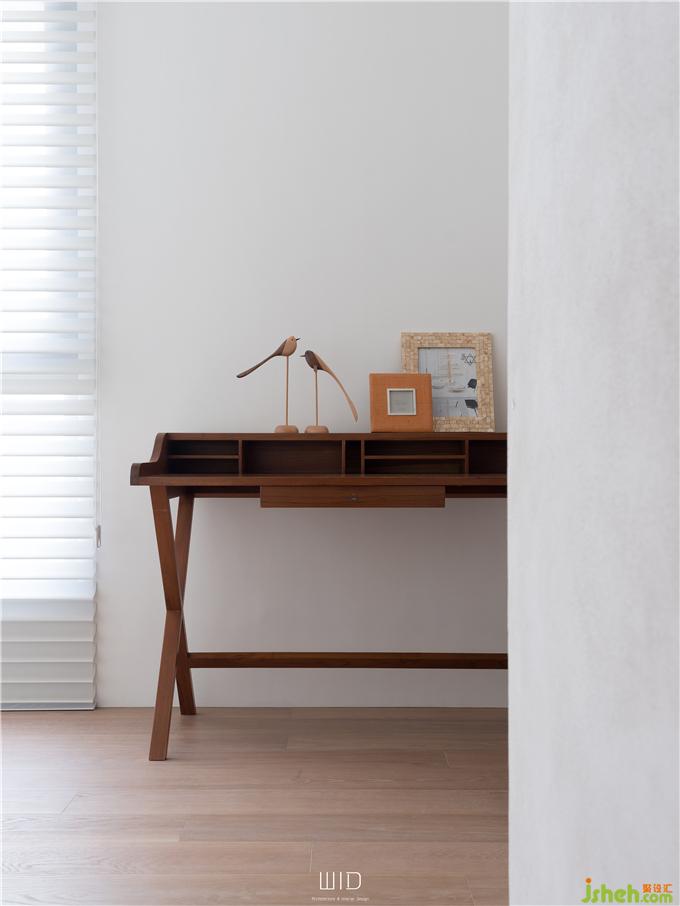 推開始用進口特殊緩沖五金的拉門,映入眼簾的是一臺白色電子琴,上段做為可以擺放樂譜、裝飾品的層板,讓居住者盡情的享受音符在空間中的流動,充分利用收納空間又不影響整體格局。