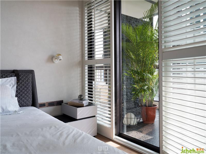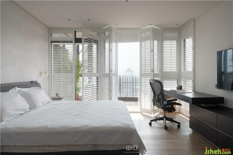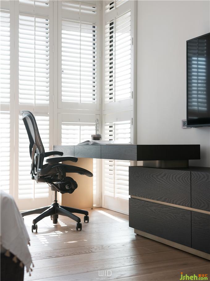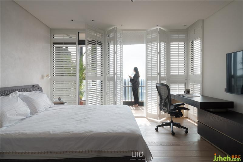 隨手拿本好書搭配著手沖咖啡,到戶外曬曬太陽,都是生活日常。我們使用了百葉窗,天氣好的時候可以全部收折起來,讓室內室外合而為一,將窗戶關上,也一樣有著落地窗的采光與穿透。延伸「白色系」的百葉,將舒適的感覺帶進臥室搭配窗外的景和植物,愜意又放松。主臥陽臺聯(lián)通客廳,在空間中可以隨性的走動、停留,場域之間沒有隔閡。面長的書桌結合收納功能,運用高低落差增加層次感,木質的顏色內斂沉穩(wěn),可以安定人心。觸摸墻面各個角度的弧度、質感,在光影之間的輕微碰撞中傾聽清脆悅耳的聲響,跟著線條一起走進了更衣室。