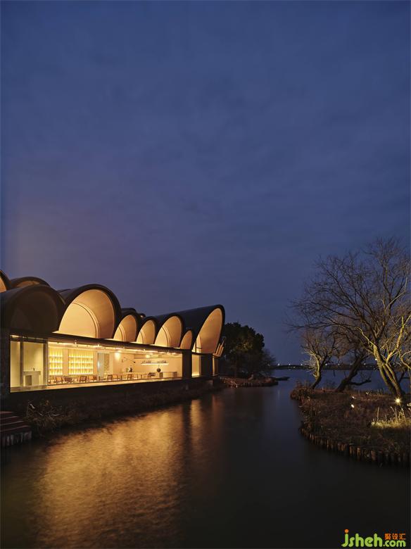 WJ STUDIO 萬境設(shè)計更是將其室內(nèi)空間賦予節(jié)奏韻律與時空體驗,當(dāng)人們帶著對水鄉(xiāng)田園風(fēng)景的向往來到此地,殊不知,自己早已成為這風(fēng)景中的一員。