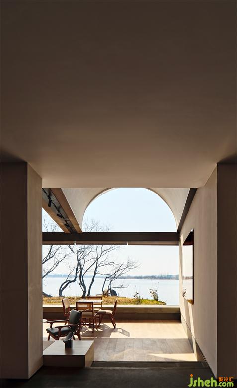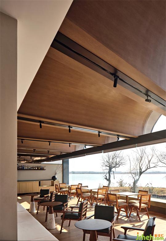沿著?廊慢?,下沉式的咖啡書吧區(qū)使?與??更為 親近。橫向展開的空間與連續(xù)圓拱屋?就像?幅? 的畫卷,將清晨微光、?陽?邊一一攬收。