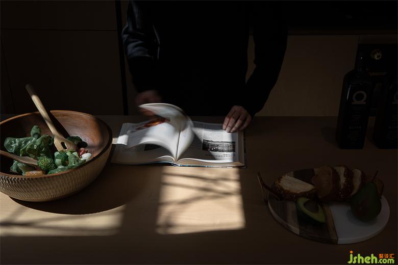 The dining room and kitchen are integrated into the design, making the kitchen no longer an isolated, enclosed space but combining the island counter and dining table to expand into a social venue for communication, sharing and banquet hosting, giving the space more complexity and possibility.