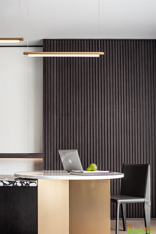 室內(nèi)的主體是一個(gè)通透的開(kāi)放性空間,LDK一體化的設(shè)計(jì),貫穿起大會(huì)客廳、餐廳、廚房、辦公區(qū),大面積的玻璃窗,引入室外風(fēng)景,形成自然流動(dòng)的滲透延展。