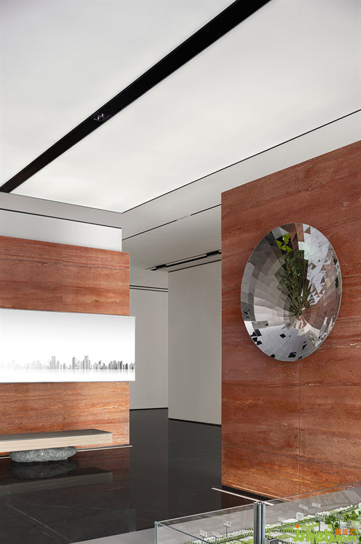 華潤售樓處設(shè)計極簡幾何線條排列組合成了接待臺,冷靜的大理石與溫潤的木質(zhì)組合而成,呈現(xiàn)出別致的詩性。