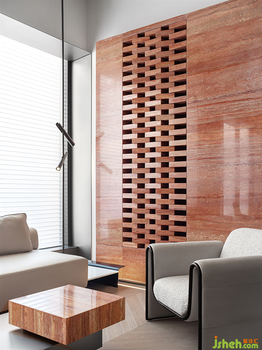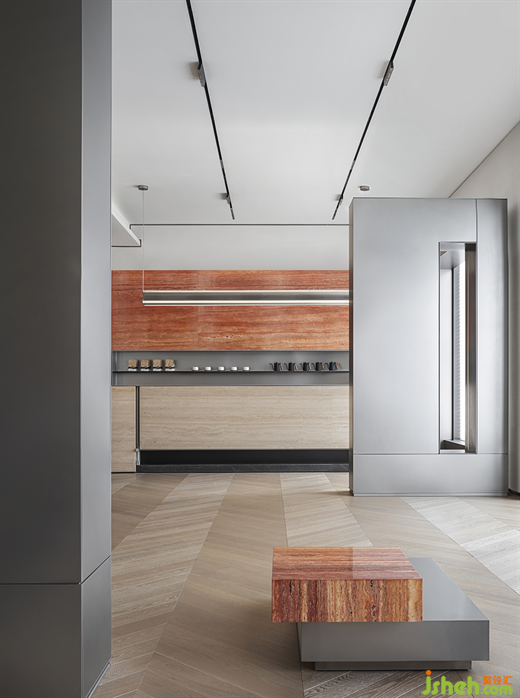 介入石材自然的表達(dá)方式,穿插現(xiàn)代時尚的材質(zhì)分割,提取和凈化靜謐而現(xiàn)代的形式表達(dá)。一束光穿插巖石縫隙,給予能量磁場。