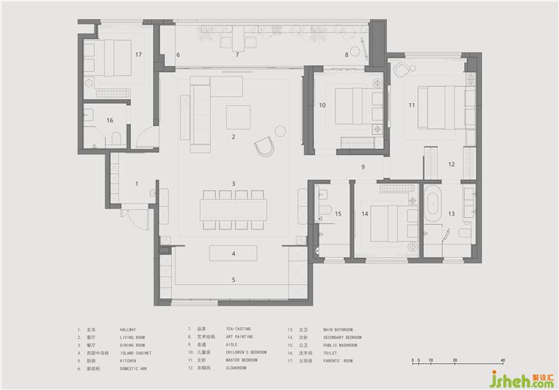 在如此氤氳著東方雅韻和開闔氣象的端方空間中徜徉,最終我們的視線再次回到這一室層次豐富、肌理各異的“紅暈”當中?!熬G艷閑且靜,紅衣淺復深”,說的是牡丹紅;“猶余雪霜態(tài),未肯十分紅”,說的是梅紅;“淡淡微紅色不深,依依偏得似春心”,說的是海棠紅……東方極愛這一抹紅,也最懂這一抹紅,當這些氣質(zhì)各異的“紅”交織在一起,襯托在沉郁幽雅的背景中獨綻芳華,樣板房設(shè)計就是那獨屬東方的別樣風情,也是這一眼難忘的經(jīng)典之家。