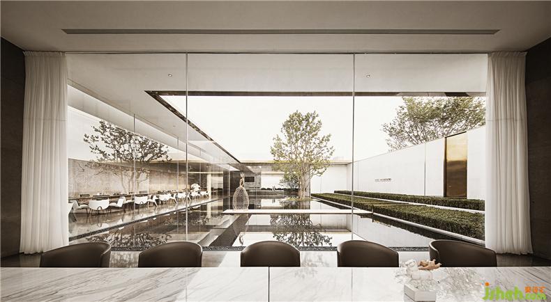 室內(nèi)便圍繞著“凹”字形的景觀延伸,是一種對景觀的呼應,同時讓時尚的主題更加完整。