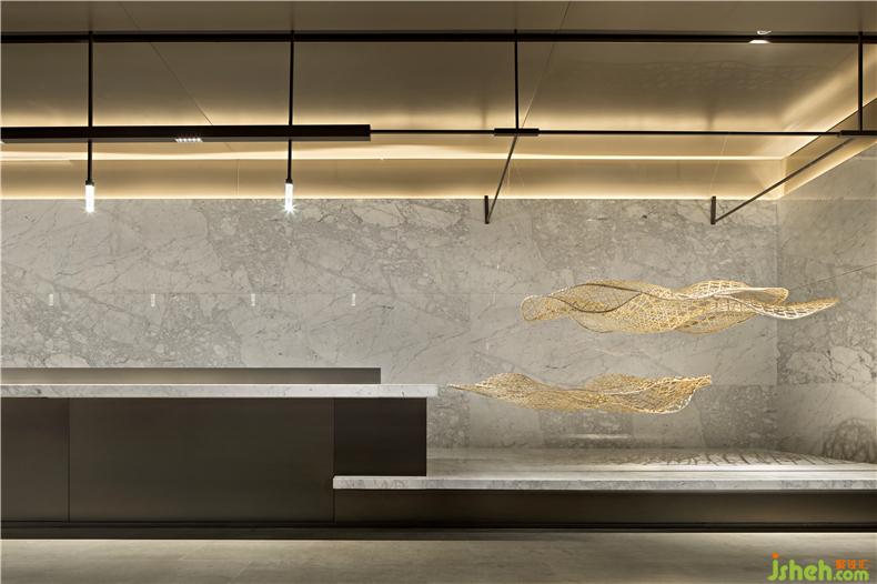 屏蔽喧嚷遠(yuǎn)離都市,只是形式上的隱士,而置身于都市喧囂也能淡然處之,才是精神層面的真正隱士。博地中心的設(shè)計(jì)充滿都市理想主義,訴說當(dāng)代“賢者隱士”對精神層面以及生活、辦公品質(zhì)的高度要求。懸于半空的場所被打造成世外禪境,使得身處其中的人獲得精神與心理上的放松。它描述了繁華與靜謐并存的東方哲學(xué),旨會(huì)所設(shè)計(jì)在平衡看似矛盾的二者,能身處都市不被喧囂瑣事煩擾,又不違背自然初心,領(lǐng)略清幽雅致。