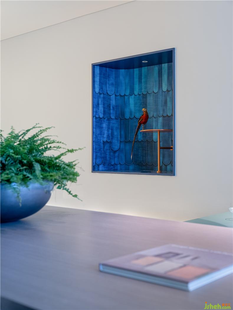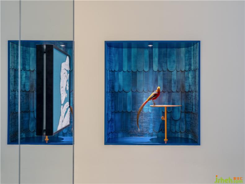 特定的色彩足夠表達(dá)出現(xiàn)代主義的期許與情緒,室內(nèi)設(shè)計(jì)師脫離傳統(tǒng)語(yǔ)境,以浸入式的方式呈現(xiàn)。取自于不同的文化及習(xí)俗的象征,珍禽置景配上波普藝術(shù)化的“兵馬俑”,來(lái)自于本土與外域的靈感交融為空間注入趣味性。