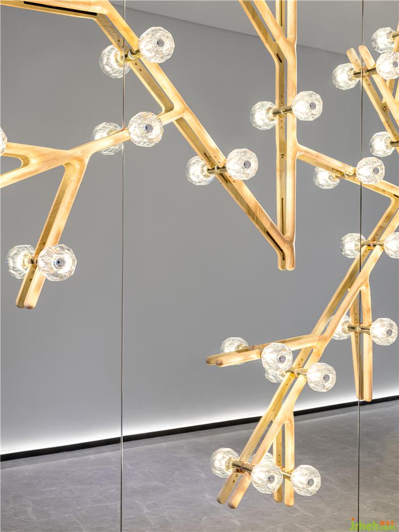 色彩鮮明的室內(nèi)環(huán)境,天花上固定的銅鏡設(shè)計(jì),室內(nèi)設(shè)計(jì)師多光源的黃銅燈具……故事和符號(hào)連成空間軌跡。混合著包豪斯元素的設(shè)計(jì)在空間里打磨著工藝細(xì)節(jié)。天馬行空的創(chuàng)想如孢子植物肆意生長(zhǎng),萌發(fā),展枝,散葉。奇思妙想含蓄地隱藏在色彩與材質(zhì)之間,凸顯空間激發(fā)靈感的張揚(yáng)屬性。頭頂多光源頂燈與鏡面,有著中古家具的格調(diào),室內(nèi)設(shè)計(jì)師像《廣告狂人》里Don Draper在辦公室選用的款式——表達(dá)具有功能性一種態(tài)度。鏡面反射出的光,像肆意涌動(dòng)的創(chuàng)意,為整個(gè)空間賦予了蓬勃的互動(dòng)性。
