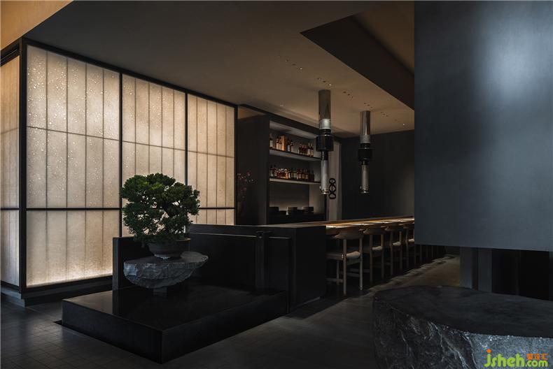 在室內(nèi)空間的設(shè)計(jì)理念中,設(shè)計(jì)師摒棄一般燒肉店張揚(yáng)、熱鬧的排面,將東方侘寂美學(xué)與傳統(tǒng)日本和室相結(jié)合,營(yíng)造遺世獨(dú)立的尊貴氣質(zhì),又不乏溫馨如怡之感。