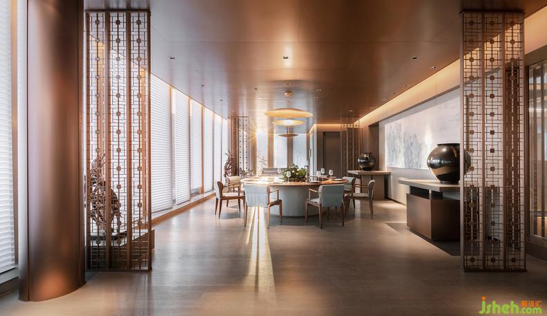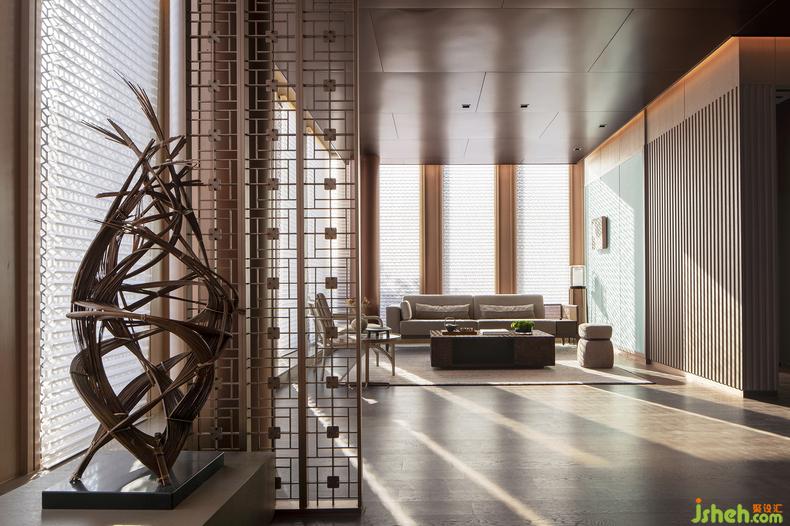 在這個(gè)虛化了古與今、自然與建筑界線的靜謐空間中,銷售中心設(shè)計(jì)無(wú)數(shù)道屏風(fēng)銜接起的光明與暗影里,一種從東方世界觀里生發(fā)而出的中正平和之美,串聯(lián)起了一切空間、線條、色彩、材質(zhì)的內(nèi)在意義。